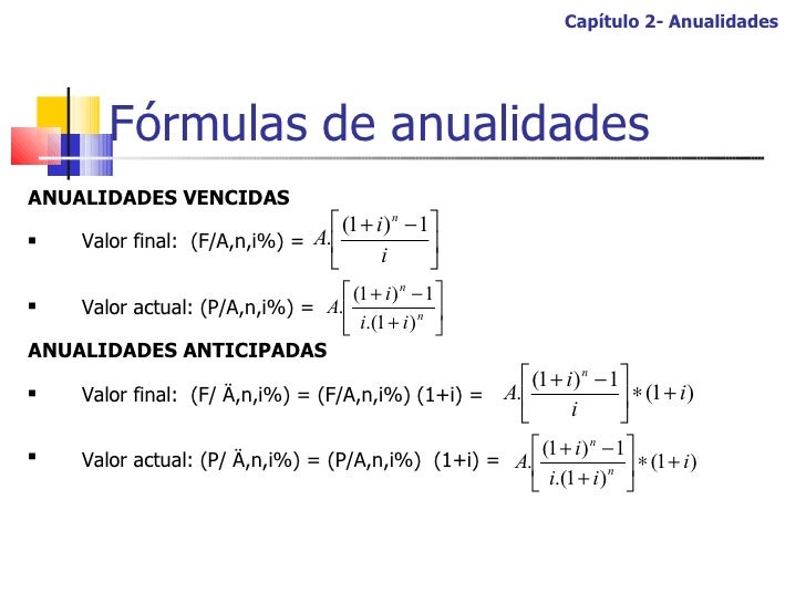 | FORMULA PARA ANUALIDAD ACTUAL |